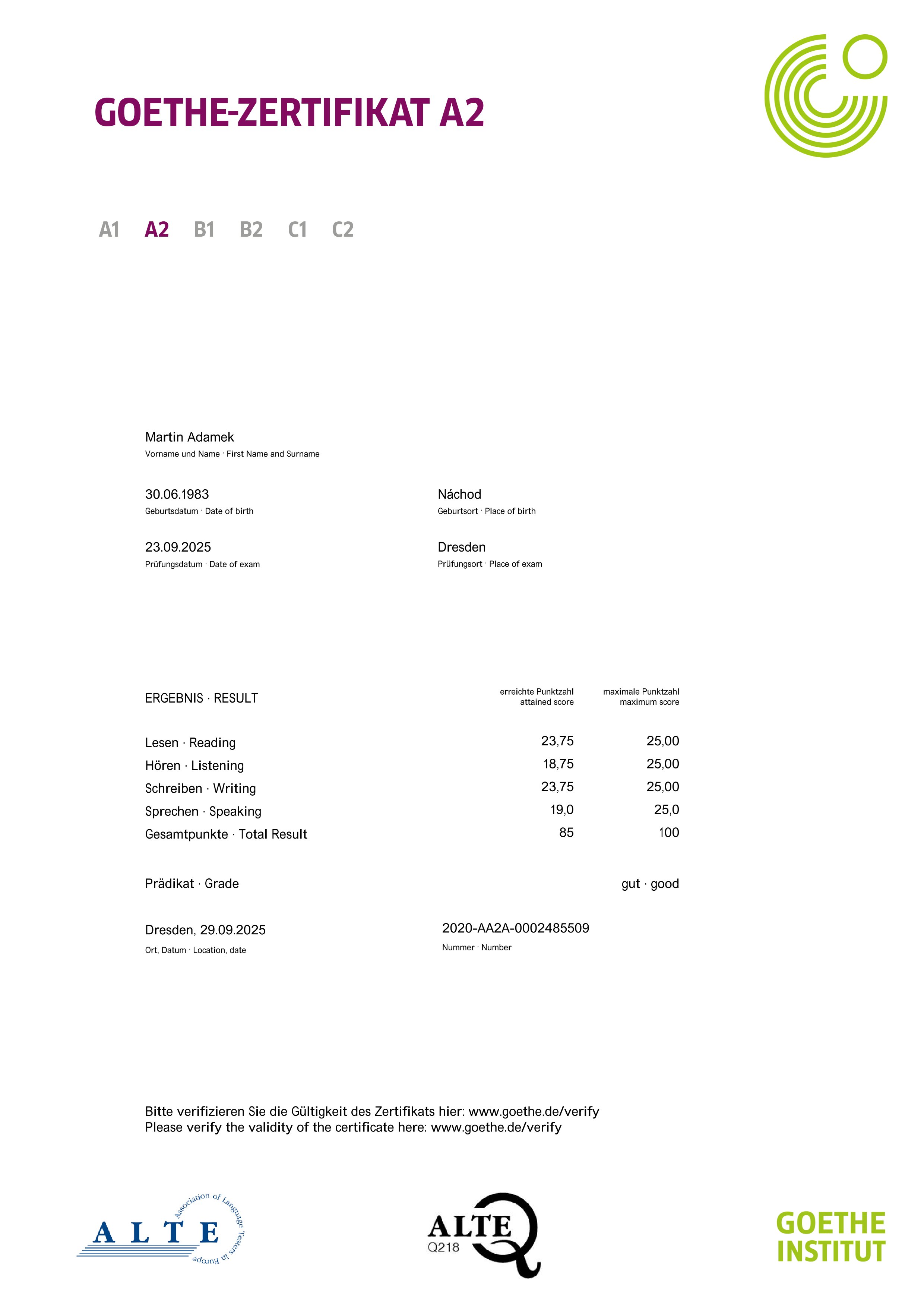 ADÁMEK, Martin. Certifikáty a osvědčení: Studium a kurzy. Martin Adámek [online]. Náchod / Meziměstí [cit. 2025-10-22]. Dostupné z: https://www.adamek.cz/certifikaty