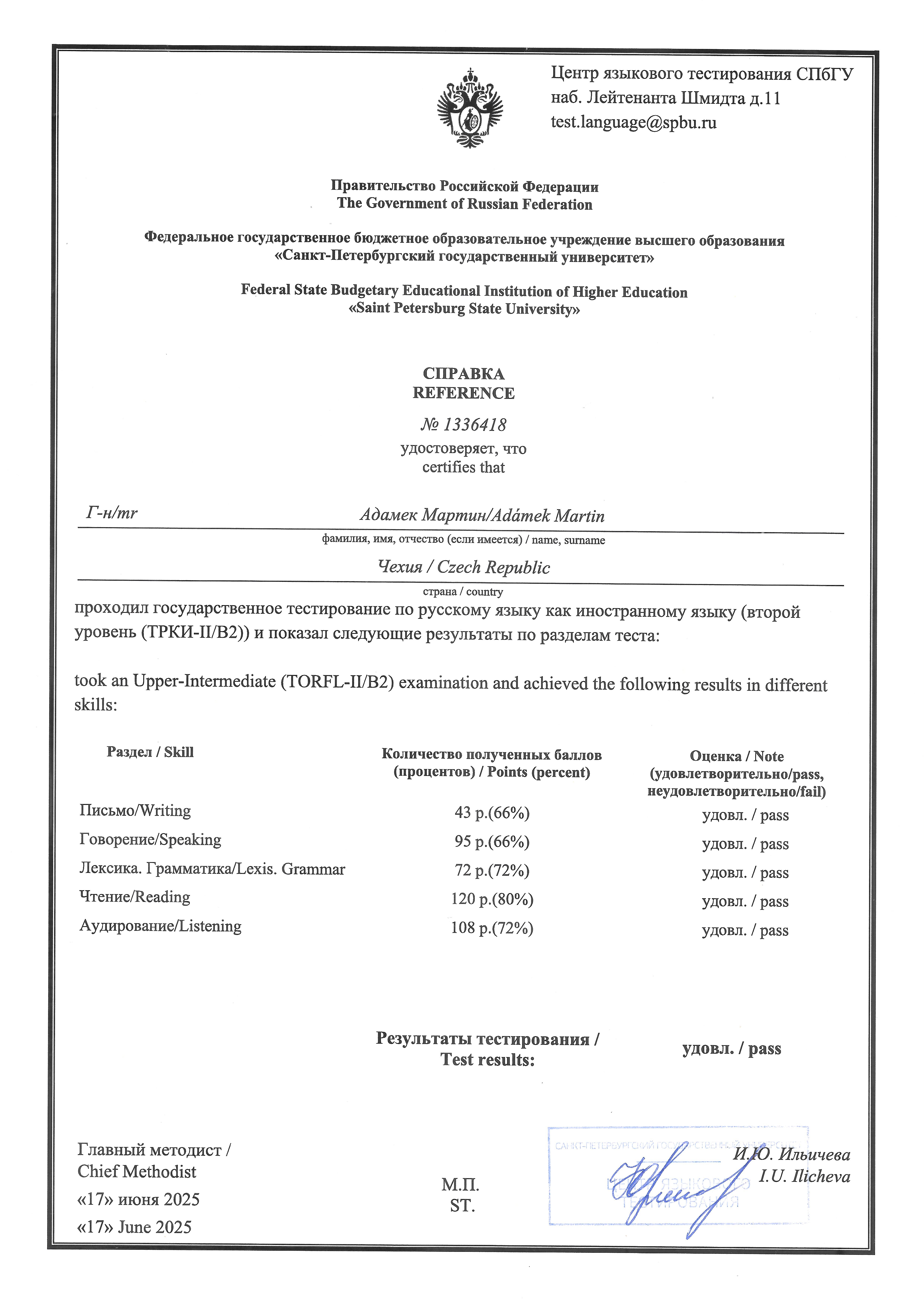 Seznam absolvovaných předmětů (Formát .pdf 1.6 MiB) z nedokončeného studia středoškolské pedagogiky – českého jazyka pro české střední školy.